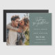 Salven las tarjetas magnéticas de la fecha para la pareja que no puede esperar para que amigos y familiares sepan que están atando el nudo. Este diseño verde con foto "estamos atando el nudo" es fácil de personalizar con su foto, nombres, fecha de boda y ubicación.