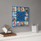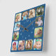 Reloj de pared de keepsake moderno y personalizado con líneas simples y limpias con números blancos sobre un fondo azul clásico y doce cuadrados redondeados con tus fotos favoritas de familia, mascotas, viajes u otros recuerdos especiales.