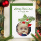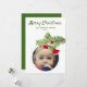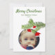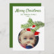 Foto moderna de la tarjeta de Navidad Santa Hat Pine Merry. Ramas de pino con sombreros de Santa. Personaliza la tarjeta con tu foto, nombre y texto en el reverso.