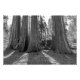 Foto en blanco y negro de la base de varios árboles secuoyas grandes tomada en el Parque Nacional Sequoia, California
