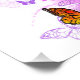 Orange, detailed monarch butterflies on light, purple, picturesque, painted background.