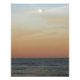 La neblina suaviza los colores de la puesta de sol a medida que la luna se eleva sobre un mar tranquilo.