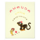 Pequeño y gracioso mono con banana en marcha de fondo amarillo claro