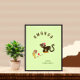 Poster con un mono gracioso y corriendo banana sobre fondo verde claro