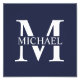 Regalos de Monograma y Nombre Personalizados con monograma blanco personalizado en estilo de letra serif clásico con caja de nombre en medio de monograma sobre fondo azul marino. Perfecto como decoradores de casa, regalos para el hogar, regalos para la familia, recién casados y más.