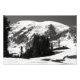 Fotografía en blanco y negro del Monte Rainier cubierta de nieve. Hay piedra a la vista. El hielo y la nieve del volcán se están derritiendo. Algunos árboles atraviesan el paisaje accidentado. Derechos reservados ©2023 Kimberly J Tilley. zazzle.com/store/developingnature