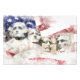 Monte Rushmore con una bandera patriótica estadounidense ondeando en una acuarela de fondo.
