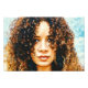 Representación artística de una joven con cabello rizado, representada en un vibrante telón de fondo azul del cielo. Reflejando la belleza natural y una atmósfera serena, este acercamiento invita a la admiración por los detalles y texturas delicados.