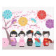 Explore el mundo de las muñecas japonesas Kokeshi y las flores de cerezo con este hermoso diseño.