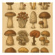 Este diseño presenta una gran variedad de setas comestibles y medicinales, situadas frente a un fondo beige de estilo vintage.