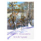 Artista de Zolotareva. acuarela sobre seda - Original color de agua pintada arte. Escena helada del bosque de invierno de nieve. Madera cubierta de nieve.Entorno invernal.Puede agregar nombre o texto personalizado. Personaliza esta plantilla.