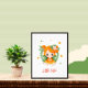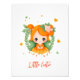 Niña pequeña con vestido naranja, pelo naranja, flores y corazones