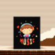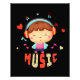 Pequeño chico lindo con notas musicales, corazones y MÚSICA de texto