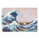 "La gran ola frente a Kanagawa", también conocida como "Bajo la ola frente a Kanagawa", es una cautivadora impresión en grabado en madera del renombrado artista japonés Katsushika Hokusai. Creada alrededor de 1831, es parte de una serie titulada "Treinta y seis vistas del Monte Fuji". La obra de arte representa una escena de inmenso poder y belleza contrastante. Una ola colosal, su cresta espumosa y curvada hacia adentro, amenaza con engullir tres pequeñas barcas en un mar agitado. En el fondo, el Monte Fuji, un símbolo icónico de Japón, se mantiene tranquilo y majestuoso, empequeñecido por la inmensidad de la ola. --- La maestría de Hokusai en la composición es evidente en la forma en que utiliza la perspectiva. La ola toma el centro del escenario, su forma dinámica llena el primer plano. Las cr