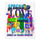 Difundir amor, no odio, Poster para el mes del orgullo. Los gráficos incluyen corazones, arcos de lluvia, señal de paz.