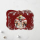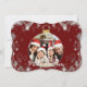 Tu foto familiar como adorno de Navidad entre los decorativos remolinos de nieve blancos con el texto del guión Feliz Navidad. Este diseño se traslada a la parte trasera donde puede personalizar a sus Navidades saludar e incluir sus nombres.