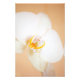 Fotografía de una orquídea blanca en un fondo naranja claro. Derechos reservados ©Kimberly J Tilley.