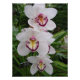 Aquí hay una hermosa imagen de orquídeas blancas, similar a las que se pueden comprar en su casa. En el centro de las flores hay un acento morado y amarillo. Visita nuestra tienda para ver más fotos de hermosas flores de orquídeas en flor. Esta foto está relacionada con los fondos de pantalla "Orquídea Blanca I" y "Orquídea Blanca II" de la categoría Flores/Plantas de MLeWallpapers.com.