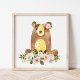 Foto Oso, Animales Woodland, Boho, Flores Rosa