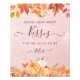 Esta invitación captura la esencia de la calidez del otoño y la sofisticación bohemia, lo que garantiza que su celebración sea verdaderamente memorable. En el centro del diseño hay una calabaza delicadamente pintada en tonos suaves, que representa la alegría abundante de la temporada de otoño. Alrededor de la calabaza hay estupendas flores y follaje de acuarela en ricos tonos de terracota y naranja, que reflejan los colores vibrantes del otoño. Esta invitación combina magistralmente el encanto rústico con la elegancia bohemia, encarnando perfectamente el espíritu de una lluvia de regalos para novia de otoño.