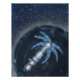 A Palm Tree Space Station Science Fiction Photo Print with Planet, Blue and Silver station, blue solar panel leaves in dark space by artist Jason Girard.