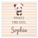 Lleva un sentido de calma y encanto al espacio de tu pequeño con esta impresión personalizada de panda todo en uno. Este diseño presenta un panda lindo, colocado contra un fondo moderno de rayas suaves de durazno y blanco.
