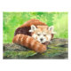 Pintura acuarela de un panda rojo en un viejo tronco de árbol.
