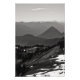 Fotografía de paisaje blanco y negro de colinas onduladas y montañas hasta donde se veía la vista. Filas de árboles aquí y allá. Y todavía quedan algunos trozos de nieve a principios del verano. Derechos reservados ©2023 Kimberly J Tilley. www.zazzle.com/store/developingnature