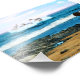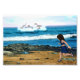 Una pintura digital de un joven chica corriendo a lo largo de la orilla, que iba a ver a los delfines jugando en el mar.