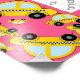 Moderno y moderno diseño lindo personalizado rosado de los coches de taxi con coches amarillos y negro y fondo de rayas de damas para un regalo único. Las mejores ideas de regalo de taxi para hombres y niños y chicas.