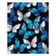Mariposas realistas, azules y blancas, sin fisuras en el fondo negro.