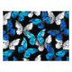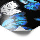 Mariposas realistas, azules y blancas, sin fisuras en el fondo negro.