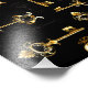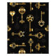 Patrón incomparable de llaves antiguas, doradas y de silueta sobre fondo negro.