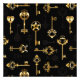 Patrón incomparable de llaves antiguas, doradas y de silueta sobre fondo negro.