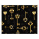 Patrón incomparable de llaves antiguas, doradas y de silueta sobre fondo negro.