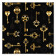 Patrón incomparable de llaves antiguas, doradas y de silueta sobre fondo negro.