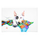 Un adorable bullterrier inglés blanco con un emblemático parche en los ojos negros sobre una colorida manta de cuadros. ¡Los matones blancos son demasiado lindos! Este abusador solo pide abrazos. El cumpleaños perfecto, te amo, pensando en ti o obtén un buen regalo para cualquiera que ame las corridas de toros inglesas. Siéntete libre de agregar tu propio texto; hay mucho espacio. ¡Y también puedes cambiar el color de fondo! Arte original en plumas de tinta de pincel de color sobre papel blanco A6. El diseño presenta el monograma de impresión de pulgares del artista, Renate Kriegler.