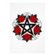 Pentagrama negro con estampado, decorado con rosas rojas florecientes con hojas sobre fondo blanco. Estilo tatuaje.