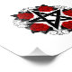 Pentagrama negro con estampado, decorado con rosas rojas florecientes con hojas sobre fondo blanco. Estilo tatuaje.