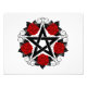 Pentagrama negro con estampado, decorado con rosas rojas florecientes con hojas sobre fondo blanco. Estilo tatuaje.