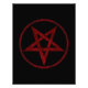 Pentagrama rojo, invertido, texturado en círculo, sobre fondo negro. Símbolo oculto. 666