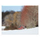 Pequeña casa en medio de un paisaje invernal con árboles coloridos.