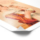 Anuncio de perfume de época de 1893 de dominio público. Imagen en melocotones y naranjas de una niña en gorra con delantal. El niño está soplando burbujas.