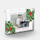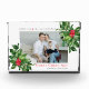 Marco fotográfico de Watercolor Holly Berries y Holly Leaves con un elegante deseo de Feliz Navidad y Feliz Año Nuevo. Diseño fotográfico de vacaciones personalizado.