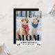 Papel de la madre del perro Feliz cumpleaños, tarjetas de felicitación de fotos personalizadas modernas. Este diseño moderno presenta un texto negro "MOM" sobre tu foto favorita en un fondo blanco con el texto editable "Feliz cumpleaños (tu texto y nombre)" escrito en tipografía moderna acentuada con huellas de pata. Personalice el texto editando el cuadro de texto.