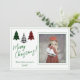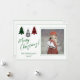 Tarjeta de Navidades fotográficos personalizados para toda su familia y amigos. Búfalo de una casa de campo revisa árboles de Navidad. Guión verde y tipografía.
