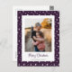 Navidades de fotografía personalizado púrpura postales con estrellas y un hermoso título de escritura festiva. Personaliza fácilmente estas postales de Navidades de fotos morados con tu imagen y un nombre de familia. El título personalizado Happy Holidays está disponible dentro de la herramienta de diseño, lo hace visible personalizando esta plantilla. El fondo, el título y el texto se pueden personalizar a cualquier color.