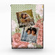 Un íntimo bloque de fotos acrílicas para personalizar o personalizar con una foto DE ENTONCES y AHORA de la mejor amiga de madre e hija o hijo. Sobre una bonita polka blanca de color suizo, los puntos de diseño y la decoración floral de bonito. Día de la Amistad Divertida, cumpleaños o regalo de amor para tu mejor amigo... mamá.