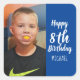 Foto personalizado Pegatinas de la fiesta de cumpleaños personalizada para un niño de fondo azul. Sólo tienes que añadir tu propia foto personalizado a esta plantilla y cambiar el texto para personalizarla para tu hijo.