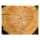 Rico en textura, un tronco de corte muestra sus anillos. ¿Cuántos años tenía este árbol? Un acento perfecto para una cabaña, decoración de bosque o para los amantes de la naturaleza. Un bonito color dorado en la carnicería.